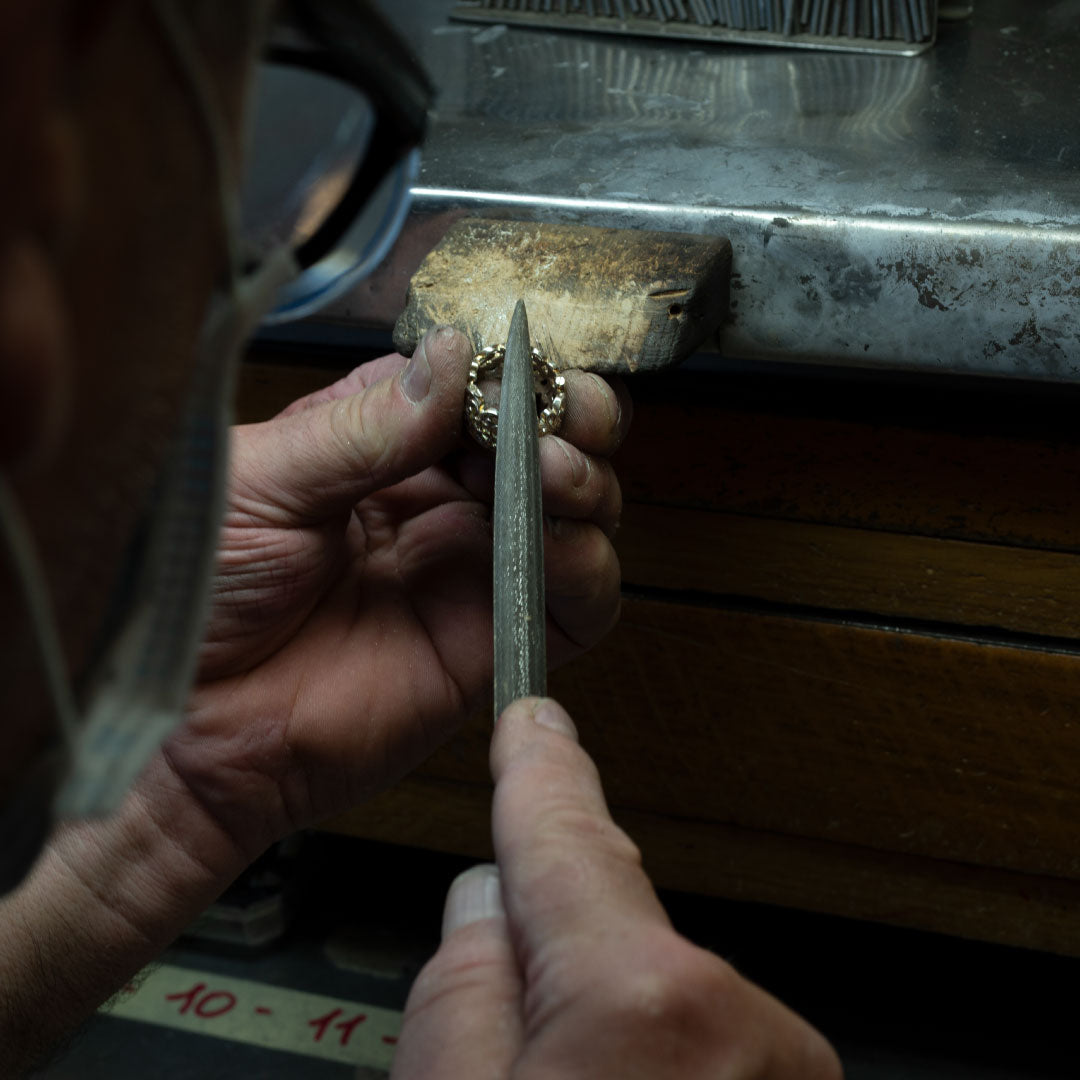 Dal disegno alla realizzazione del gioiello, ogni passo viene seguito da un maestro orafo italiano.