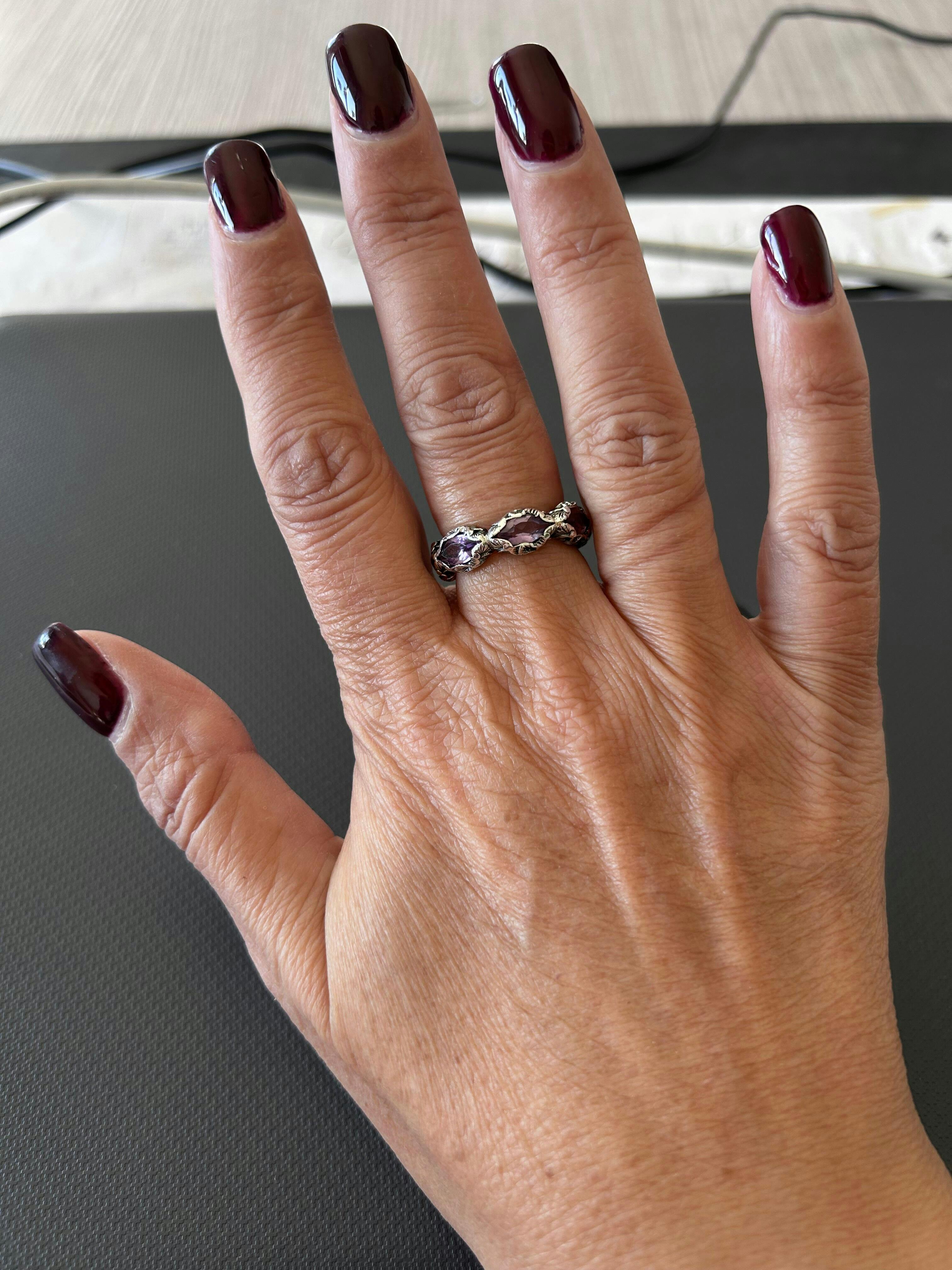 L’anello è molto bello. Sia per la particolarità della lavorazione che per il colore e forma delle pietre.